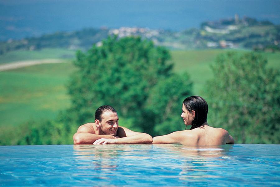 Located amidst the splendid scenery of the Val d’Orcia in Tuscany, halfway between Florence and Rome, the Fonteverde Tuscan Resort & Spa is the five-star home to an exquisitely developed set of natural springs in the Tuscan countryside. The hotel complex is affiliated with “The Leading Small Hotels of the World” with 78 rooms. The resort was built in the 17th century by the Grand Duke Ferdinando I de' Medici to take advantage of the beneficial properties of the hot springs. Today, guests can stay in that same, well-kept residence while enjoying the spoils of mother nature in the seven spa pools.